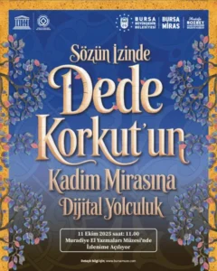 Dede Korkut’un kadim mirasını yaşatmak, onu dinlemeye, anlamaya ve aktarmaya devam etmek için hazırlanan “Sözün İzinde: Dede Korkut’un Kadim Mirasına Yolculuk” kalıcı sergisi, Muradiye Medresesi’nin geçmişin fısıltılarını saklayan duvarları arasında, geçmişin nefesini, bugünün diliyle buluşturmak üzere tasarlandı.
